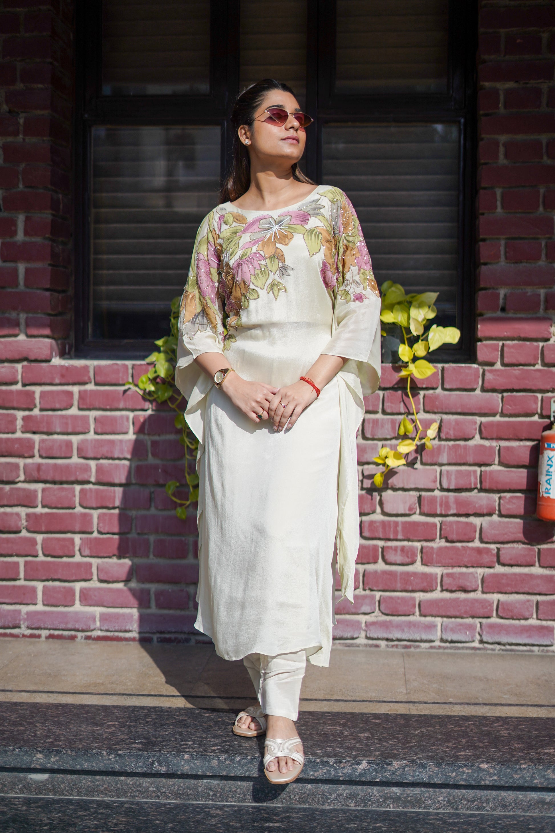 Effortless in movement and elevated in detail, the Ivory Co-Ord Set is designed to flow as you do. Crafted in a soft, airy fabric, this long-sleeved silhouette drapes beautifully, creating a graceful, fluid fall with every step.